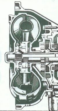 Zwischen Pumpen- und Turbinenrad besteht zwangsläufig eine Drehzahldifferenz, genannt Schlupf. Dadurch verliert man Leistung und der Spritverbrauch wird erhöht. Deshalb wurde eine Wandlerüberbrückungskupplung entwickelt, welche in den Gängen 3, 4 und 5 aktiviert wird, den Schlupf im Hauptfahrbereich ausschaltet und so die Zugkraft steigert und den Kraftstoffverbrauch reduziert.