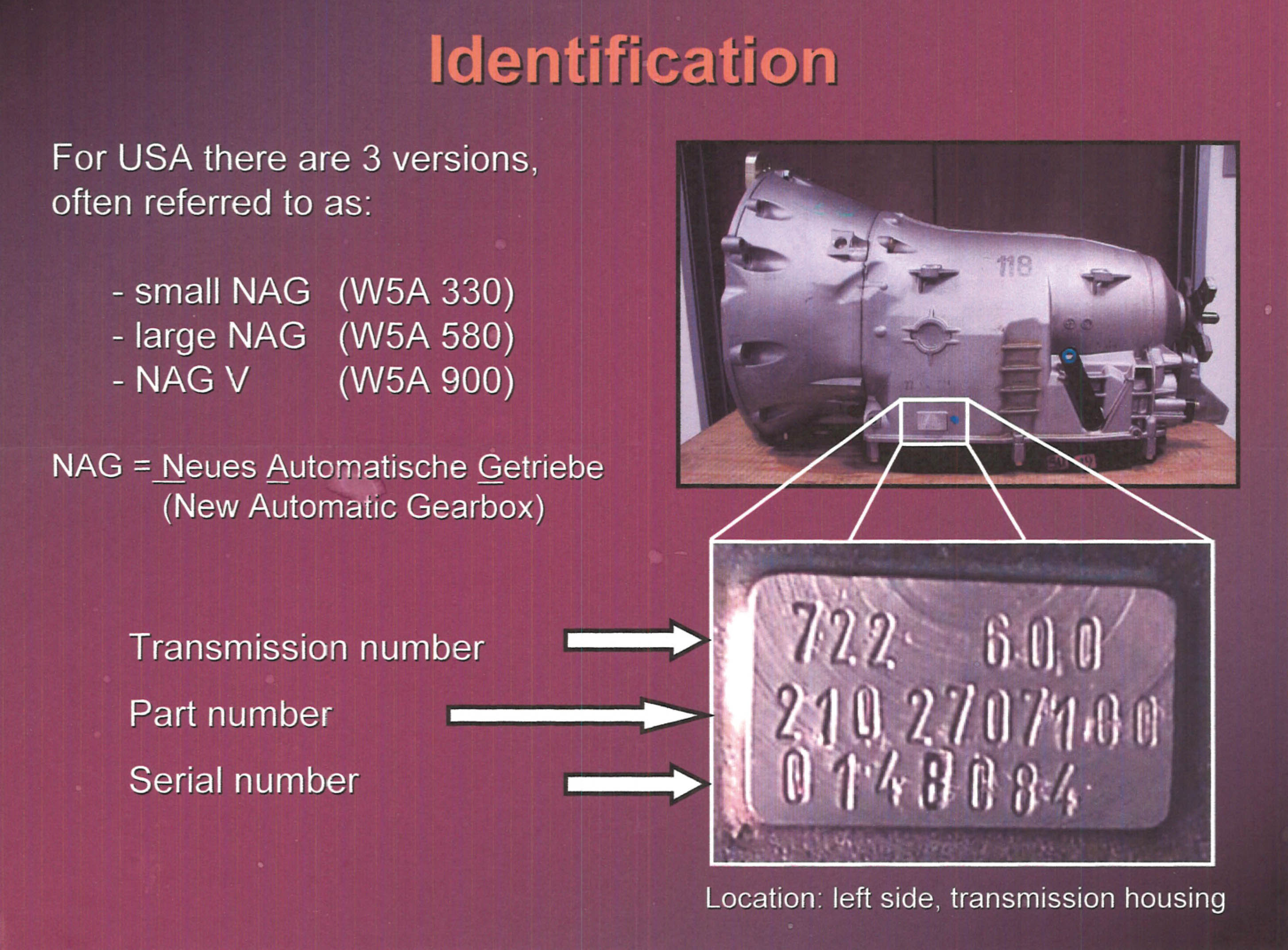 Kennzeichnung der Automatikgetriebe 3. Generation