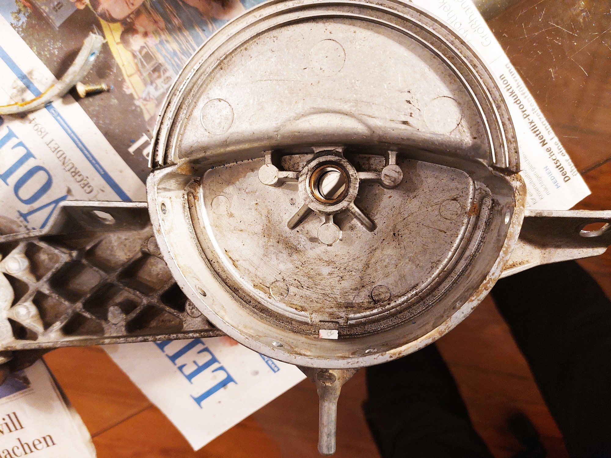 Drei Schrauben halten den Kunststoff Zahnkranz
