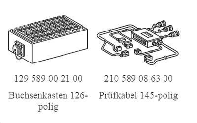 Die Diagnosehinweise im WHB setzen auf diverse Adapterkabel und vor allem auf die Break Out Box auf. Das heißt, dass zwischen das Opfer (Steuergerät) und das Bordnetz eine große Dose geschaltet wird, die es erlaubt, alle Signale auf den Leitungen einzeln zu prüfen! Das ist ein unerhörter Luxus, den man sich allerdings durchweg nicht leisten kann. Die Dinger werden wie Goldstaub gehandelt und sind aus Unobtainium. Womöglich lässt sich so was im Haus mit dem Stern auf dem Dach ausleihen, aber darauf zählen kann man nicht. Besonders beim Verdeck- und Motorsteuergerät ist das wegen der vielen Leitungen sehr nützlich. Etwas googeln hilft ganz gewaltig.