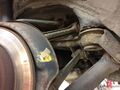 Alle Gummis und Gummilager halten „nicht ewig“, genauso wie Kunststoffe. In dem Beispiel sieht man die marode Lagerung der Lenkungs-Druckleitung, was ein ständiges Scheuern an dem Blechhalter und damit eine Undichtheit der Leitung nach sich ziehen kann. Ferner sieht man eine der beiden Diagonalstreben vorn. Diese sind zur Karosserie mit einem Gummipuffer verbunden. Am Puffer bricht oft die Verbindung zwischen Blech und Gummi. Diese Puffer sind zur Schwingungsvermeidung notwendig und sehr leicht zu ersetzen.