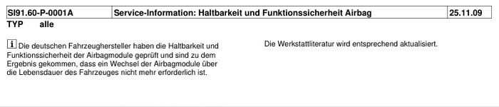 Neue Vorgabe zum Thema Airbag-Erneuerung