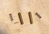 Eine Feder und ein Stift sitzen hierbei im hohlen Dorn des mittleren der unteren drei Schalter (diejenigen für die Sitzverstellung vor und zurück), und die andere Feder und der andere Stift sitzen im hohlen Dorn des Schalters für die Sitzlehne (Bild 7). Die Feder sitzt jeweils unter dem Stift, und die abgerundete Seite des Stifts zeigt nach oben. Wenn die Stifte und Federn verloren gehen, sitzen die Bedientasten nicht mehr fest.